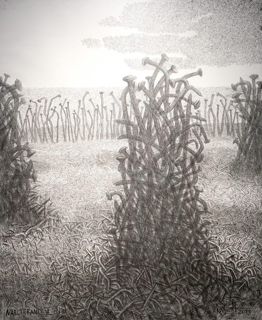 Graafilistel kompositsioonidel kujutatu on arbitraarne osutamine kummastustele (kunstis kasutatav võte, läbi mille toimub objekti väljatoomine tajumise rutiinist. Asjad rebitakse lahti harjumuspärastest seostest. Tagajärjeks on objekti eriline tajumine, mitte äratundmine), mis aega hüljates, kannavad endas õhustikku, millele saab sisu juurde pookida. Ja kõigele saab tähenduse anda, sest taust on ajalooline ent lähenemine meelevaldne. Visuaalselt üleküllastunud maailmas kasutatud graafilsed ready-made’id (vanad anatoomilised joonised, fotod) on end sabast õgivad maod. Igavene alateadlik jutustus millegi tabamisest on tekitanud obskuurse narratiivi. Lähenemine, mis on efemeerne ja kaduv ja igavesti korduv: Ta lootis, et Inglid näevad ja mõistavad, ta lootis, et keegi näeb ja mõistab.