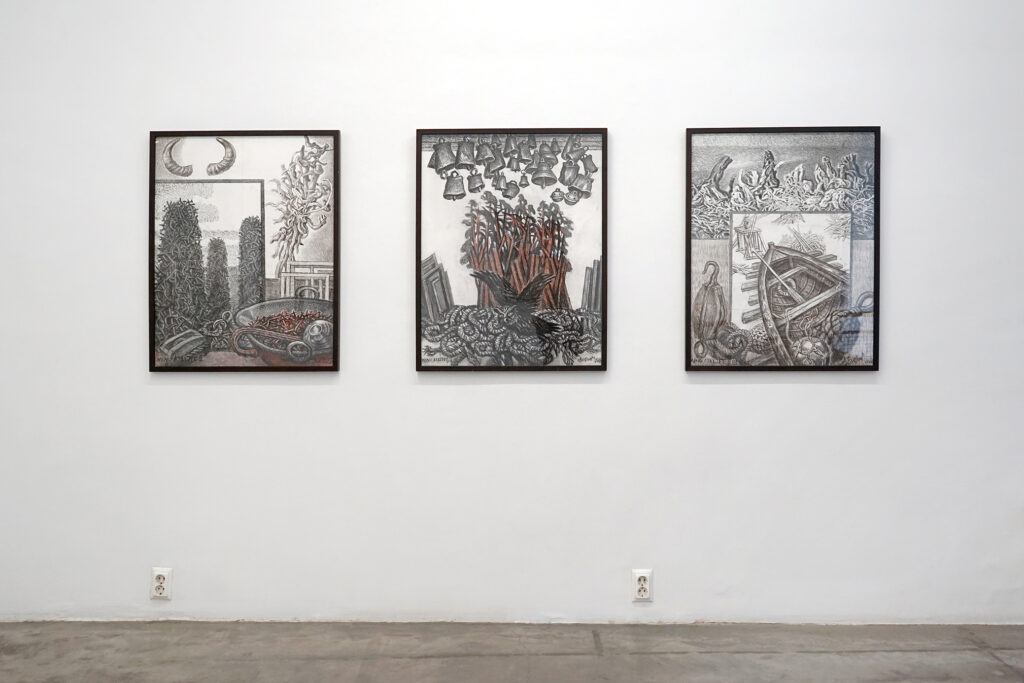 Kunstnikeduo Lisann Lillevere ja Johanna Ruukholmi skulpturaalsed installatsioonid ja video jätkavad ktulutseenist kantud maailmavaadet, segades kaasaegses ühiskonnas valdavat maailmakogemise viisi arhailiste uskumuste ja teguviisidega, hägustades kindlaid piire kehtivate tähenduste, tõlgenduste, tunnetusliku ja isikliku ning universaalse vahel. Viidates oma teostes süvaajale, mille maht on inimmõistuse jaoks hoomamatu, näitavad kunstnikud, et eilne ja tänane on omavahel lahutamatult läbipõimunud ja seosed pidevas muutuses. Hävimine ja taasloomine annab võimaluse ümbermõtestamiseks ja lootuseks. Tegu on fantaasiamänguga, milles minetatakse kehtivad sotsiaalsed ja ideoloogilised tõekspidamised, lineaarne ajataju ning maha on maetud lõpmatu kasvu ja kasumi siht.