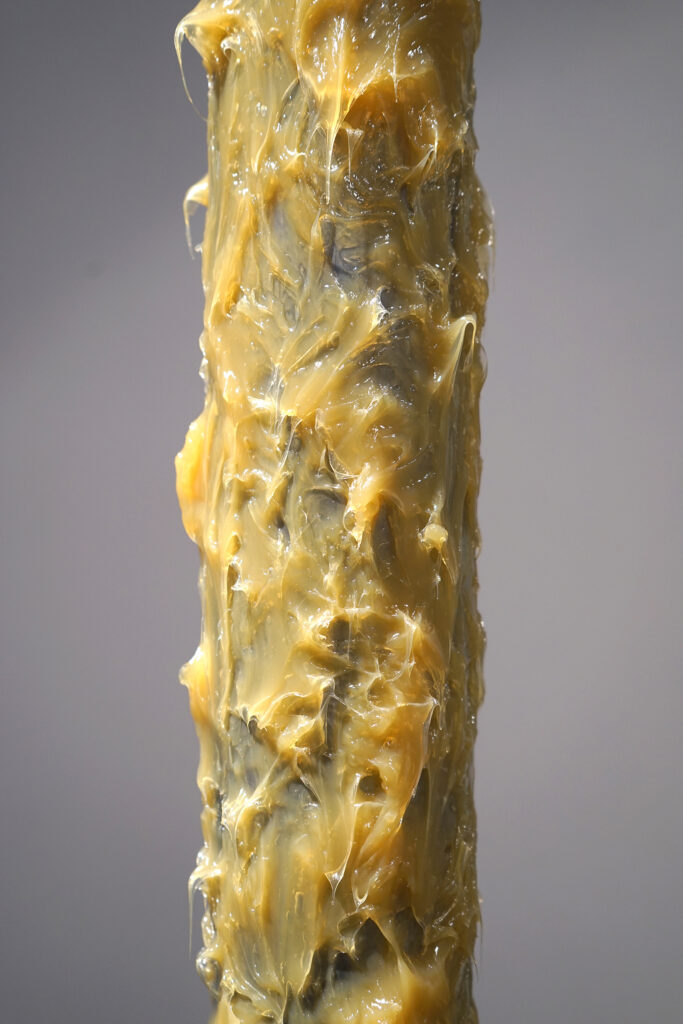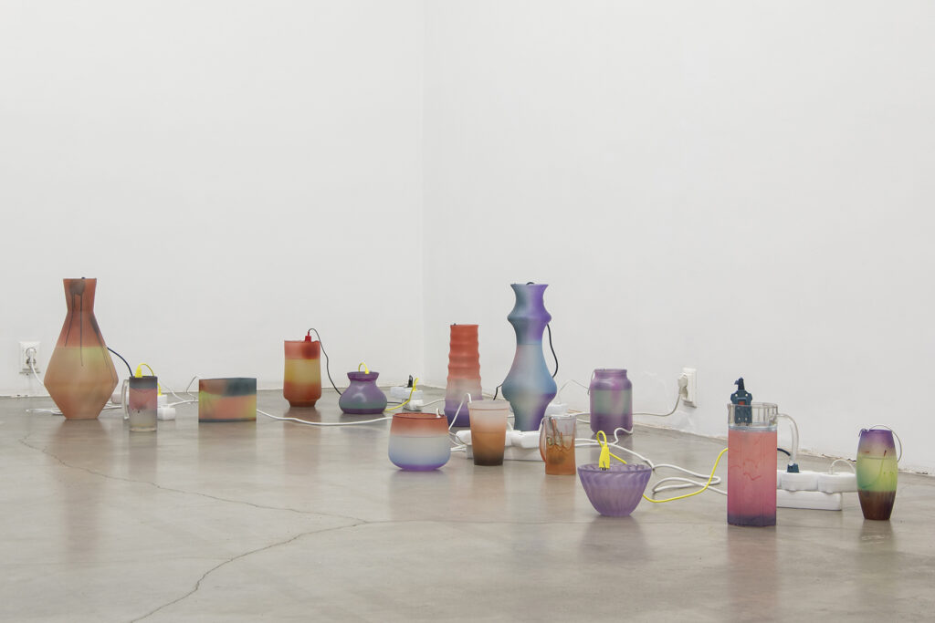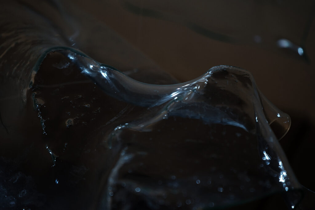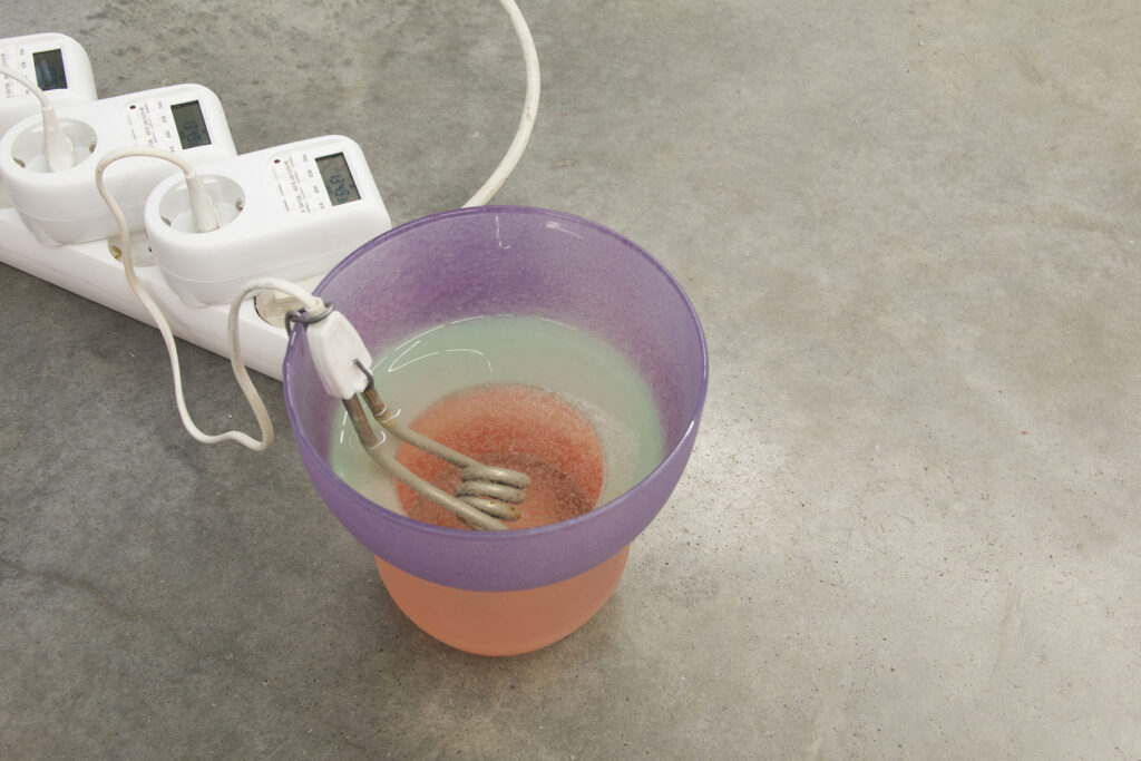Objektide – ja ka kunstnike – elud eelnevad üksikutele sündmustele ning ka järgnevad neile. Tahkes olekus aine on pidevas enesesalvestuse režiimis ühes keemiatehnoloogiaga, mis eelneb igasugusele digitaalsele plokiahelale. Nende omavaheline mõju ja kooseksisteerimine inimesega määratlevad praeguse hetke. Asume seal, kus surelike vormide kollektiivne voog eostab mehaaniliste naudingute värelusi.