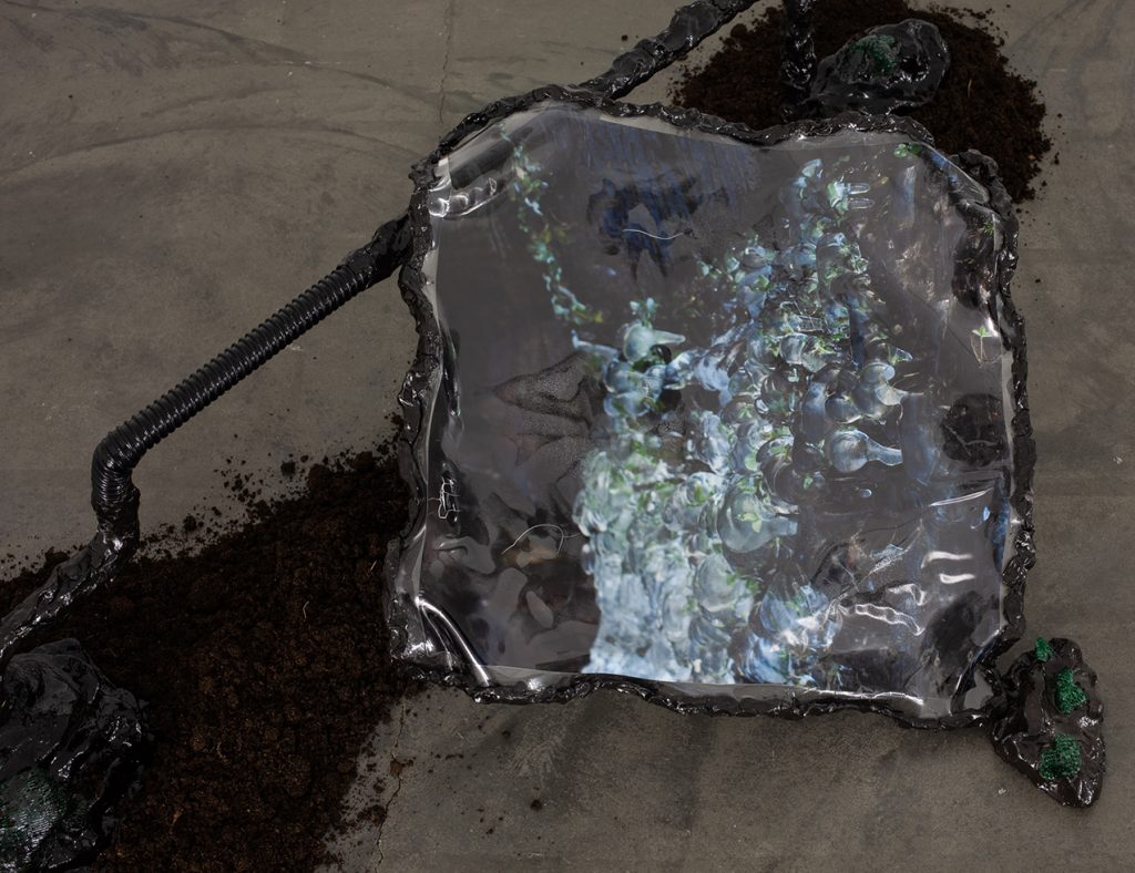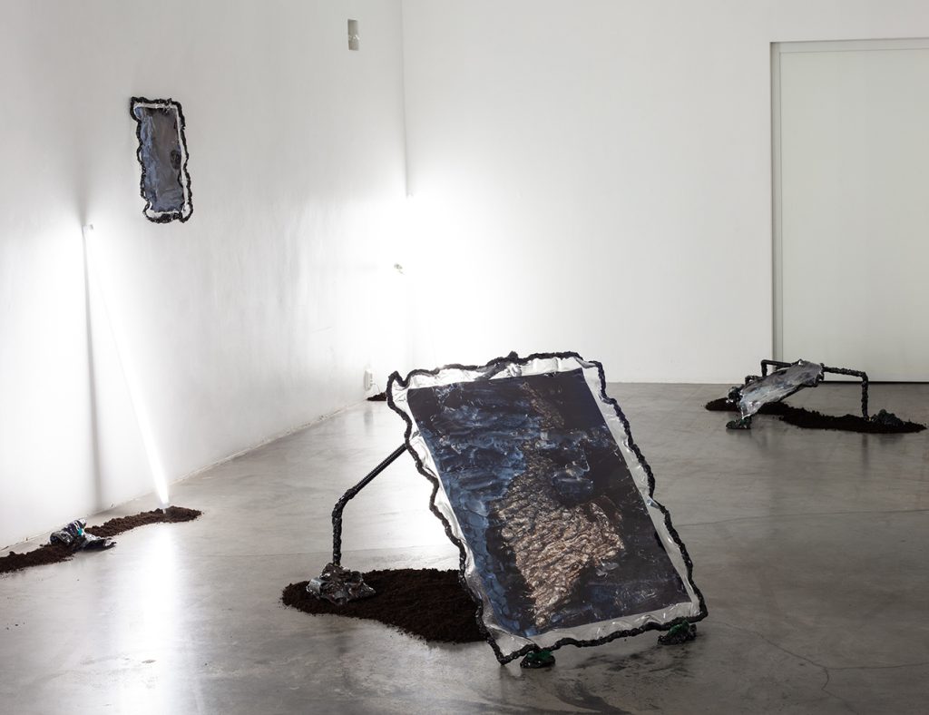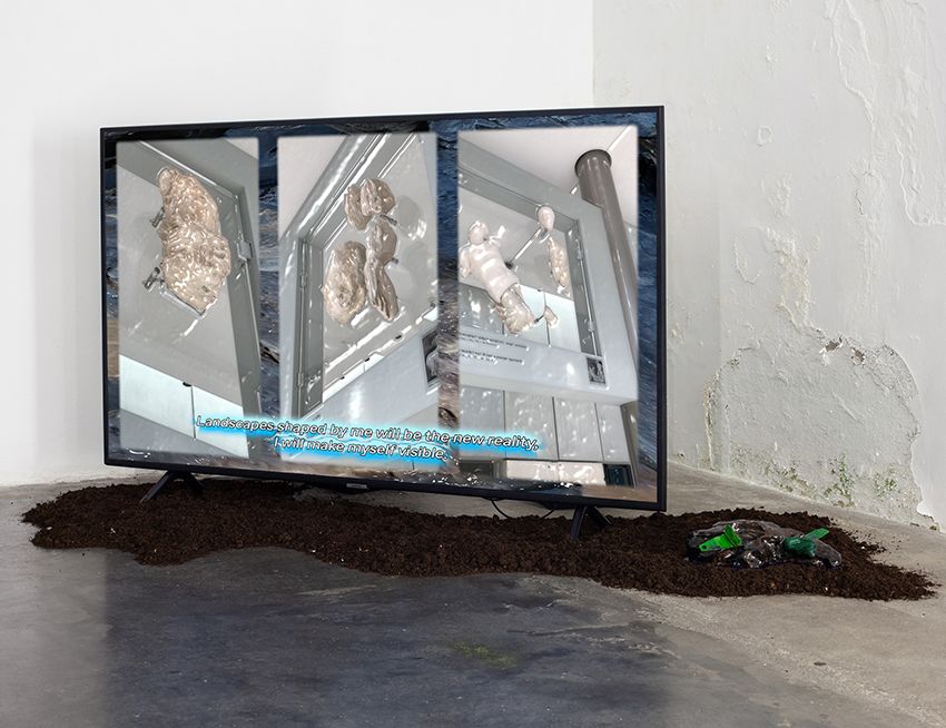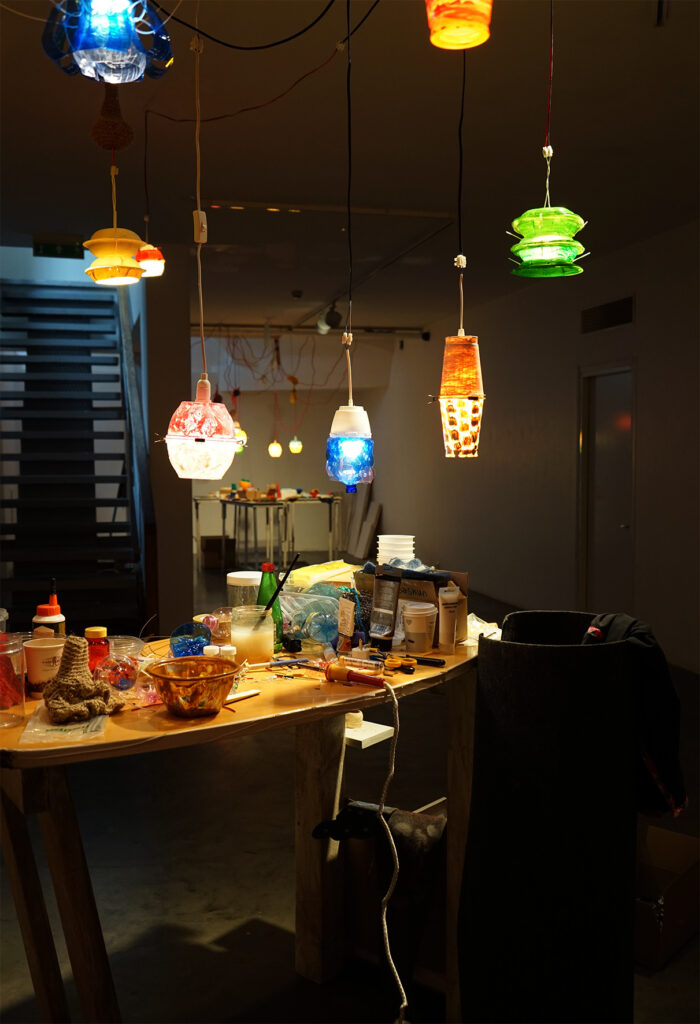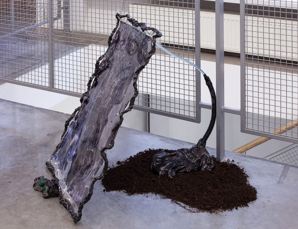Installatsiooni loomisel on kasutatud materjale nagu savi, epoksiid vaik, kokku kogutud plastikust ehitusmaterjalide leide, pleksiklaasi jääke, leitud plastikjäätmeid ja mulda.