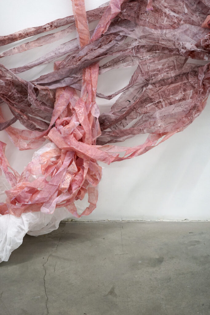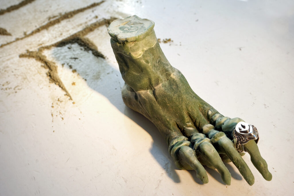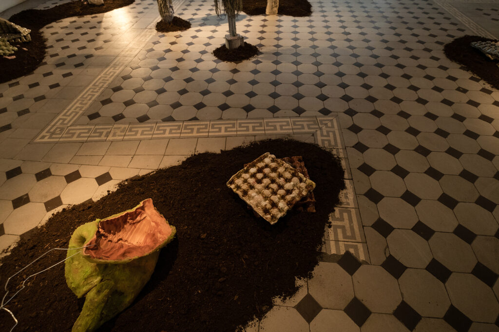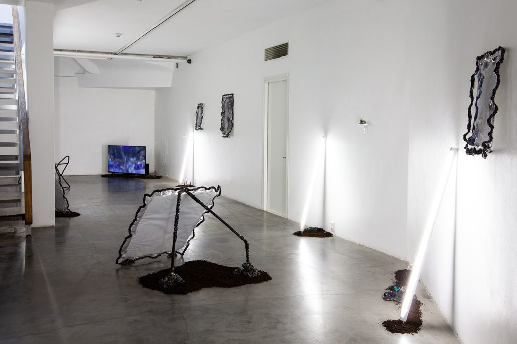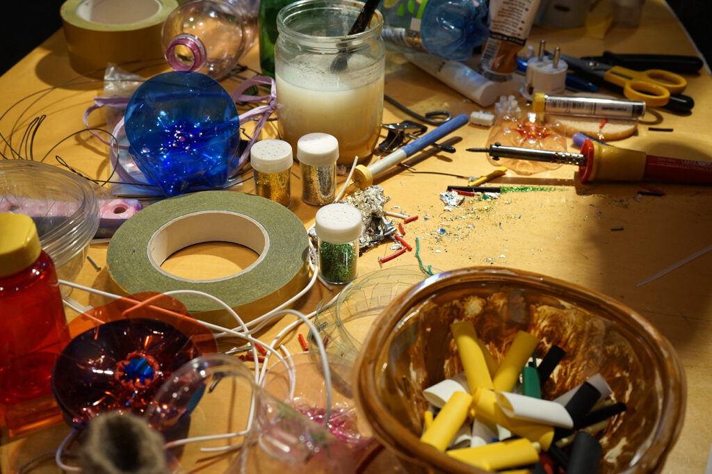 Installatsiooni loomisel on kasutatud materjale nagu savi, epoksiid vaik, kokku kogutud plastikust ehitusmaterjalide leide, pleksiklaasi jääke, leitud plastikjäätmeid ja mulda.
