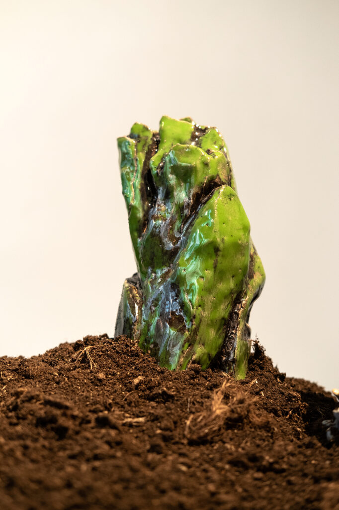 Inimkond loob igapäevaselt tarbimis- ja mugavusharjumuste kaudu tulevasi artefakte ja maapinna uusi geoloogilisi kihistusi. Hetkel tekib maailmas igal aastal vähemalt 300 miljonit tonni plastijäätmeid, mille käitlemiseks puudub vajalik infrastruktuur ning majanduslik ja poliitiline tahe. Arusaamine, et plastik ei lagune, vaid „rändab“ läbi sadade aastate, inspireerib mind plastikut käsitlema arheoloogilisest perspektiivist, osana tuleviku arheoloogia praktikast. Praegusel hetkel on plastikul juba väga suur roll arheoloogia valdkonnas. Plastikmaterjali kasutatakse muuseumides arheoloogiliste objektide esitlemiseks ning säilitamiseks. Käik arheoloogia muuseumisse võib mõjuda justkui ettekuulutusena tulevikust. Plastikmaterjal on kasutusel mitmel erineval kujul iidsete tsivilisatsioonide ajaloo jutustamiseks ja esitlemiseks. Saame vaid spekuleerida, milline saab olema nende säilmete järelelu, kui kogudega peaks midagi drastilist juhtuma. Selliseks õõvastavaks näiteks on Museum Nacional Rio de Janeiro’s. 2. septembril 2018 hävis Brasiilia vanim ning tähtsaim arheoloogia- ja teadusmuuseum. Arvatakse, et tulekahjus hävis 92,5% 20 miljonilisest esemest koosnevast kogust. Rohked metsa- ja maastikupõlengud, mis 2019. aastal aset leidsid ning mis on aastast aastasse sagenenud, panevad mind mõtlema düstoopilistele tulevikustsenaariumitele. Millise maastiku loovad need põlengud, kui kasutusel olevad plastikesemed ja ehitusmaterjalid sulavad kokku maapinnaga, luues uusi maastikke ja jättes maha plastiglomeraatkivimist pinnase tulevastele põlvedele?“