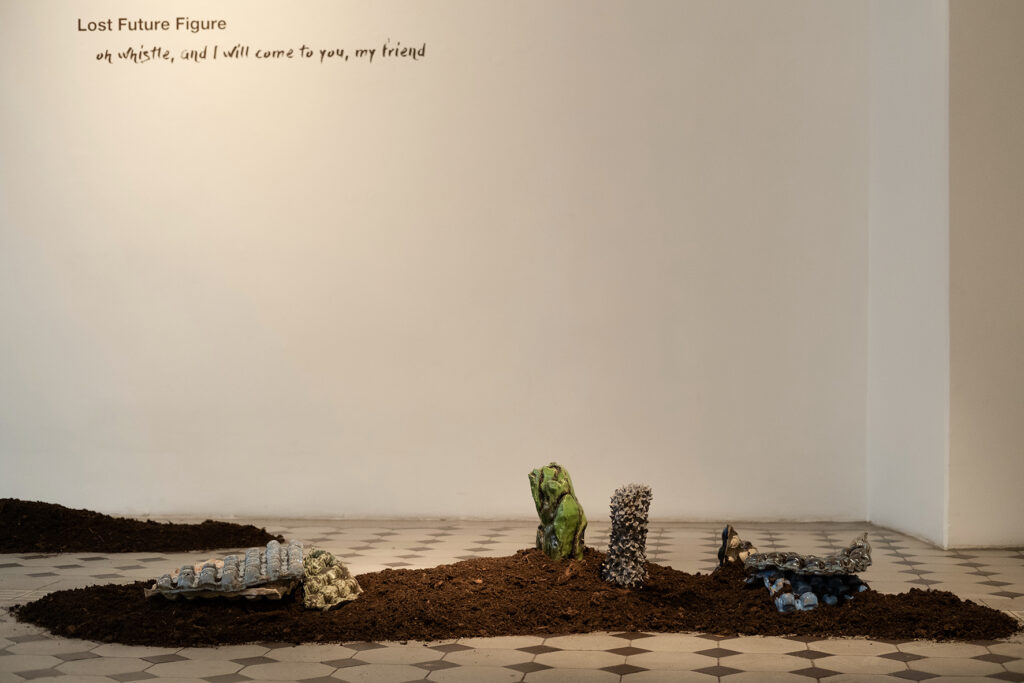 Neid teemasid käsitledes ja nende ümber spekuleerides on Kert Viiart loonud installatsiooni „Olles väljunud maapõuest muundatud kujul, pöörduvad nad tagasi“ (2019–2022), mis koosneb skulpturaalsetest vormidest ja heliga videoteosest (5’46’’). Installatsiooni kaudu vaatleb kunstnik kaasaegseid arheoloogilisi väljapanekuid, plastipõhiseid tugikonstruktsioone ja ehitusmaterjale, seades kahtluse alla kasutatavate materjalide valikud. Need hübriidsed objektid on nii kujutlusvõime kui ka materiaalse reaalsuse ühendatud kujutised, luues spekulatiivse vaate tulevikuarheoloogiasse. Need on „rännanud“ läbi aja ja deformeerunud, muutudes osaks pinnasest ning omandades väärtuse ja arheoloogilise tähenduse.
