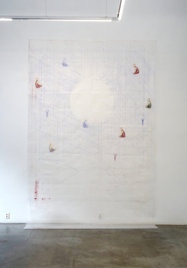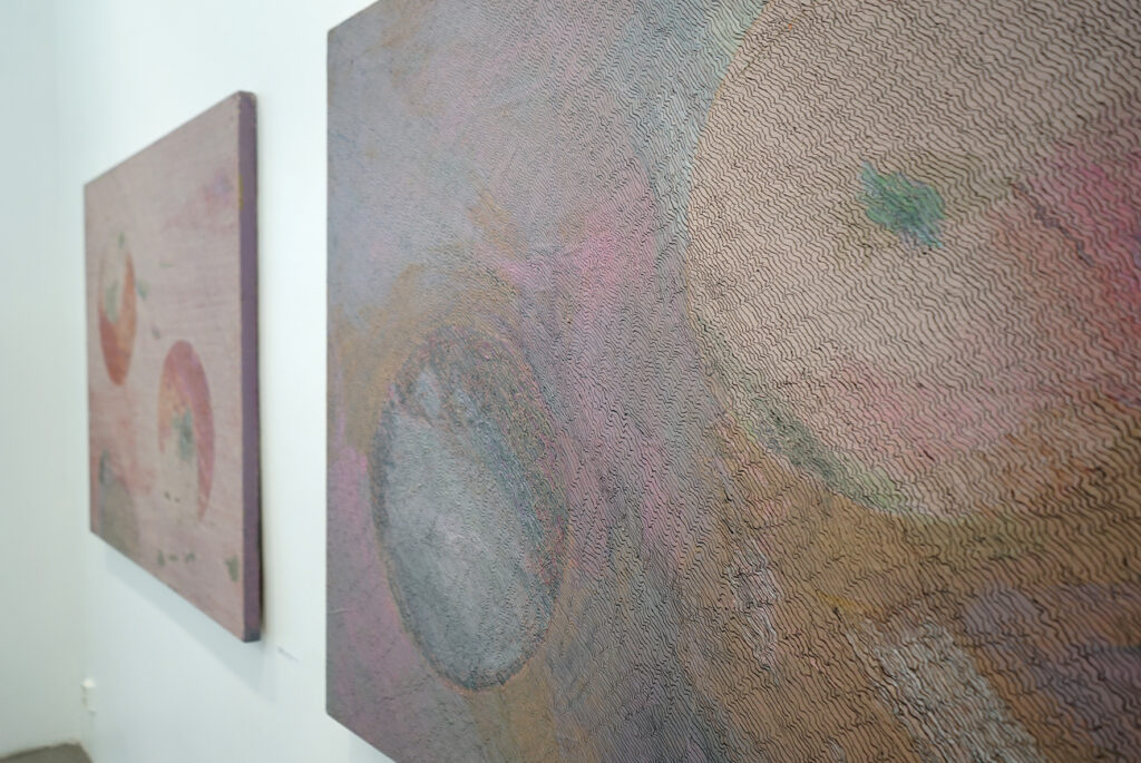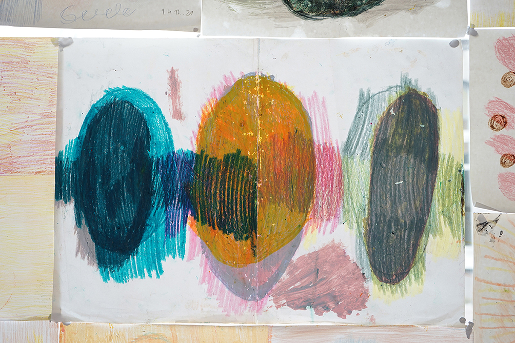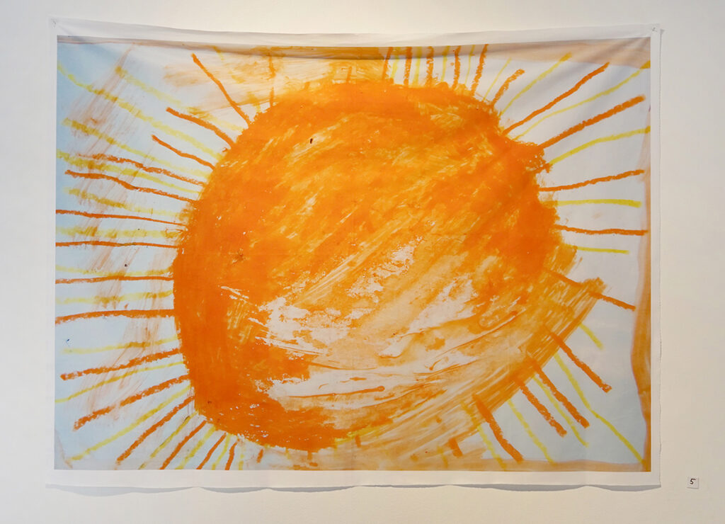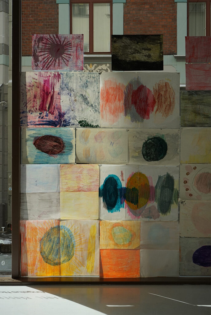 Kõik näitusel olevad teosed ei pärine ainult minu isiklikust loomeprotsessist, osa neist tulenevad minu tööst erivajadustega inimestega, mida olen viimastel aastatel erinevates hoolekandeasutustes teinud. Nõnda on sel näitusel kaastööd Sirlilt, kellega sel talvel töötasin. Tema joonistustes on palju kiirgavat energiat. Õlipastellid kuluvad tema käes kiiresti ja joonistamine on tema jaoks ülimalt intensiivne protsess, mis parandab ta meeleolu ja justkui kaitseb teda. Minu töö temaga nägi välja selline, et me lihtsalt joonistasime koos. Me kumbki pole ei joonistamist ega maalimist kunagi õppinud. Aga me joonistasime ja me maalisime. See mõjus meile hästi.