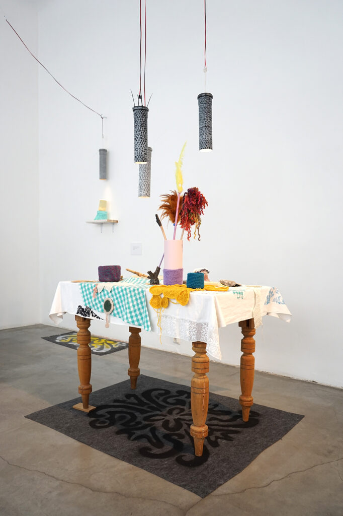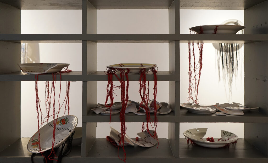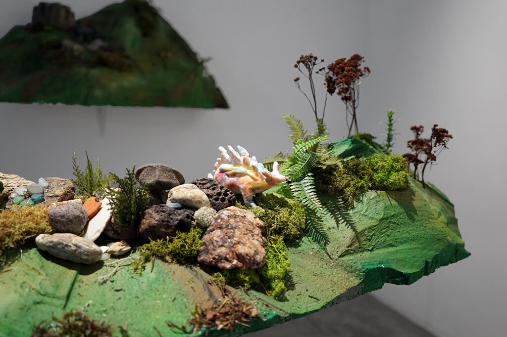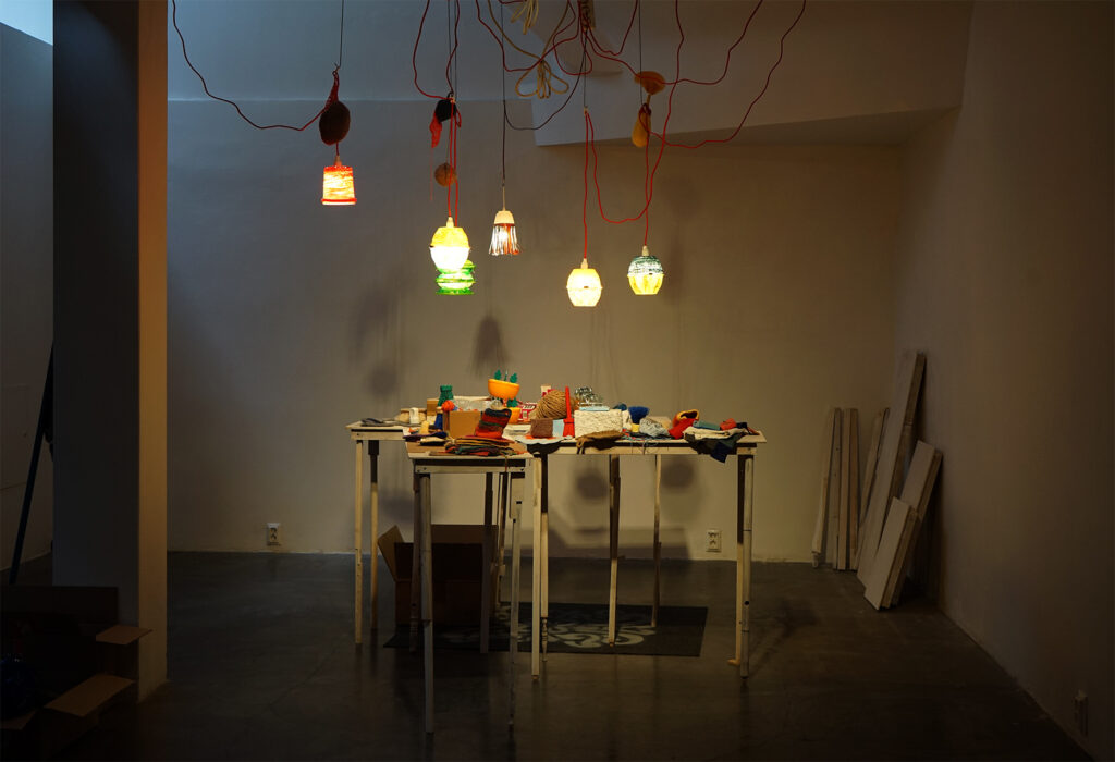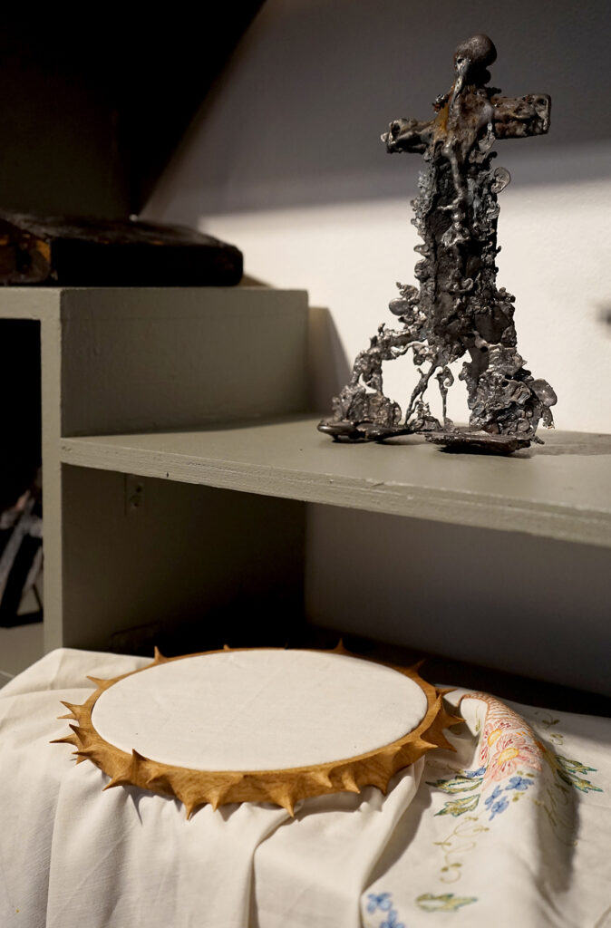 Näitusel on eksponeeritud kaks mosaiikpannood ja viis skulpturaalset objekti.“
