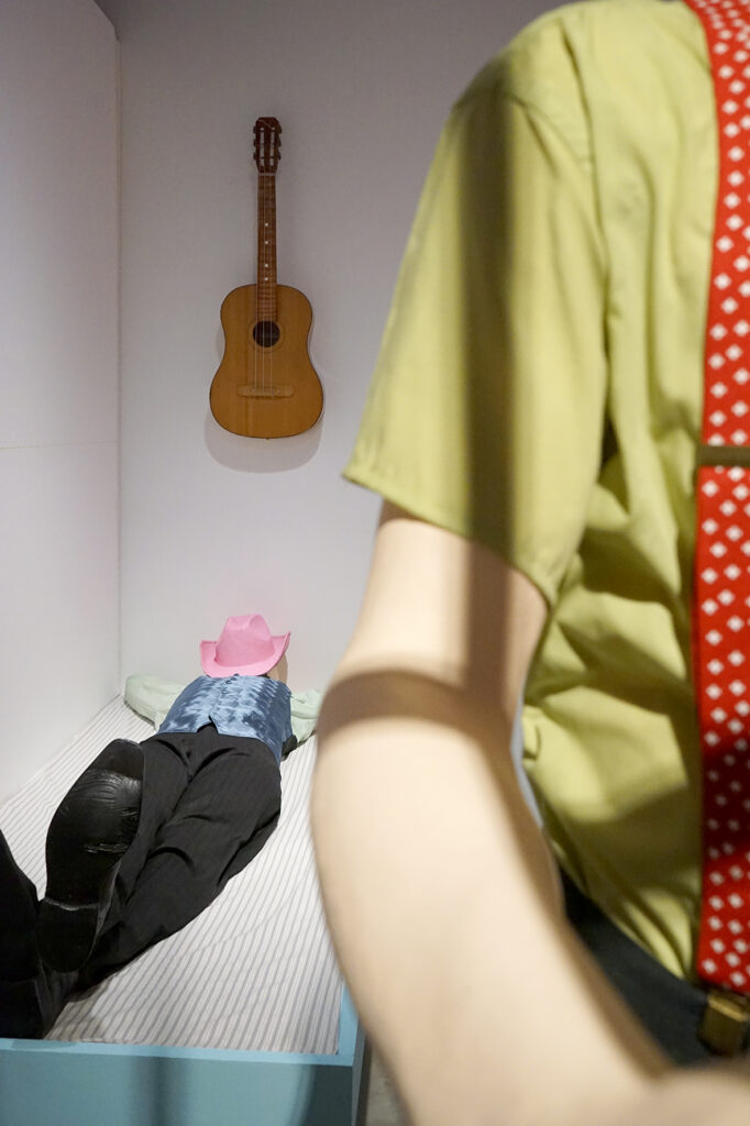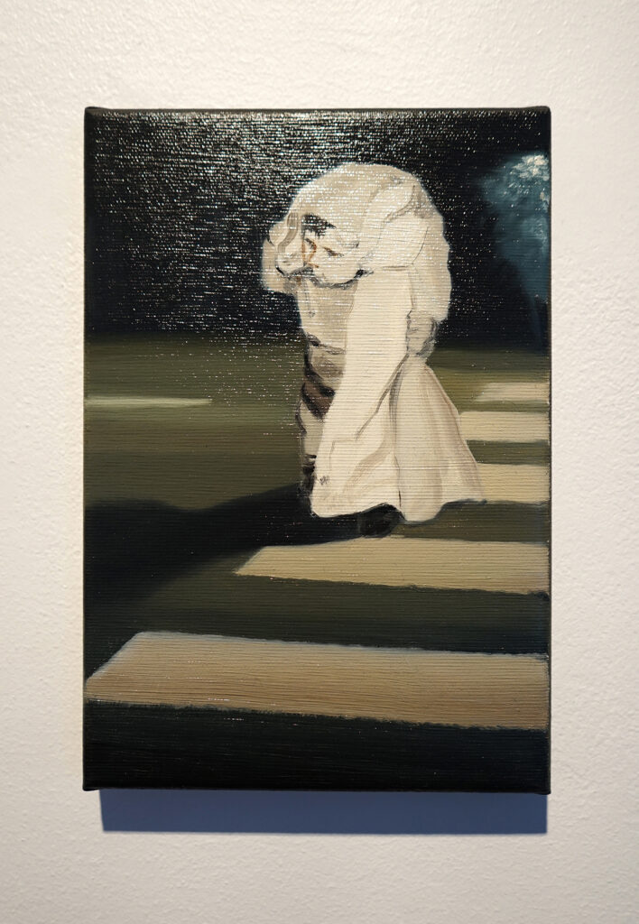 Näituse jaoks ettevalmistudes käisin galeriides ja tänavatel ning vaatasin kunsti, vaatasin kuidas teised vaatavad kunsti ja lasin kunstil ennast vaadata ja minu vaatamist vaadata. Loodan, et leiate midagi vaatamisväärset!“