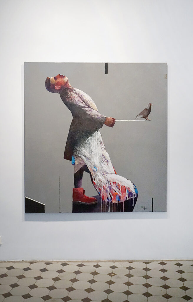 Valeri Vinogradovi avatava näituse keskne portree „Väljaajamine“ on jakuudist šamaan Aleksandr Gabõševist, kes võttis ette 5000 kilomeetri pikkuse teekonna Moskvasse, et „deemonist seestunud“ president Vladimir Putin Kremlist välja ajada. Gabõšev sai tuntuks 2019. aastal, kui nimetas Putinit kurjaks ning alustas teekonda Moskvasse, et Putin Kremlist välja ajada. 2019. aasta märtsist alates läbis Gabõšev jalgsi enam kui 2000 kilomeetrit ja leidis teel poolehoidjaid ning järgijaid. Tema teekond katkes 2019. aasta detsembris, kui šamaan vahistati Burjaatias ja toimetati Jakuutiaase psühhiaatria-kliinikusse.
