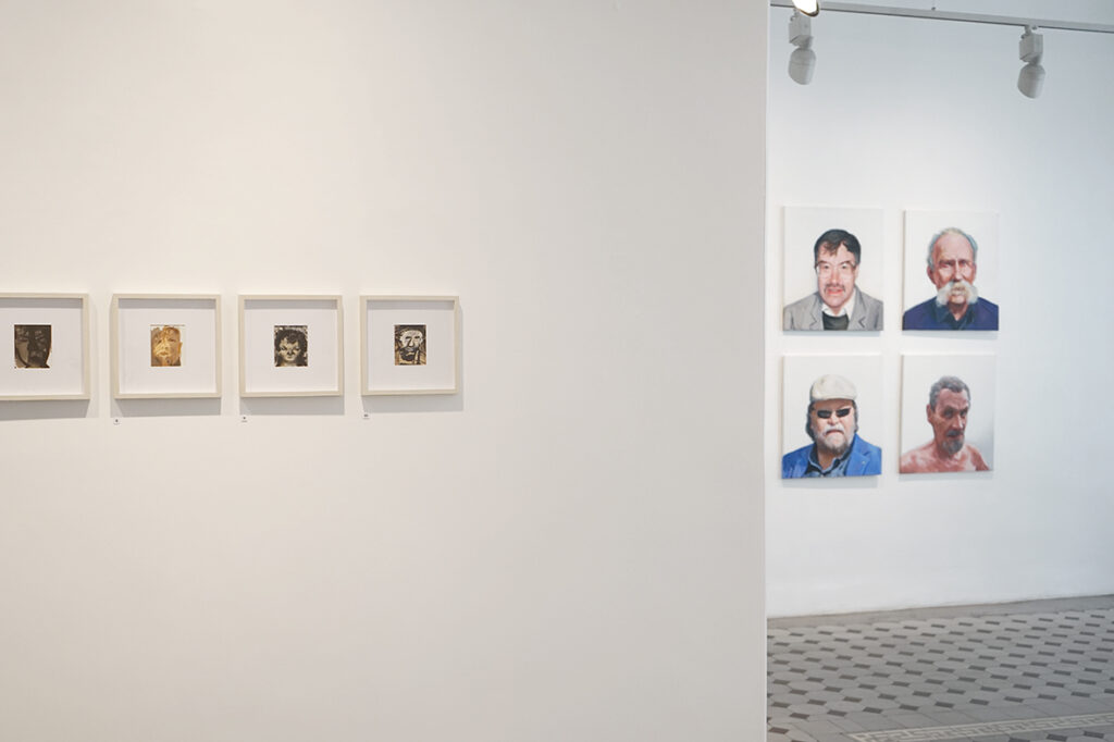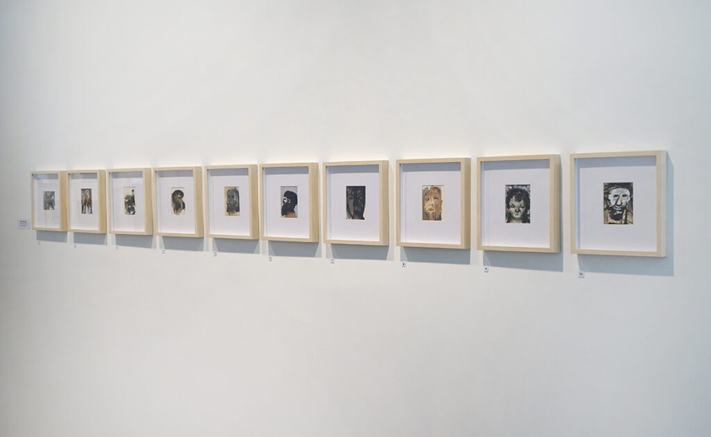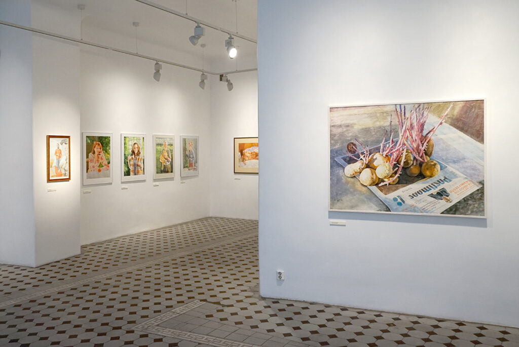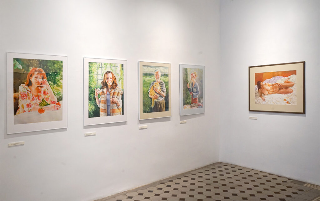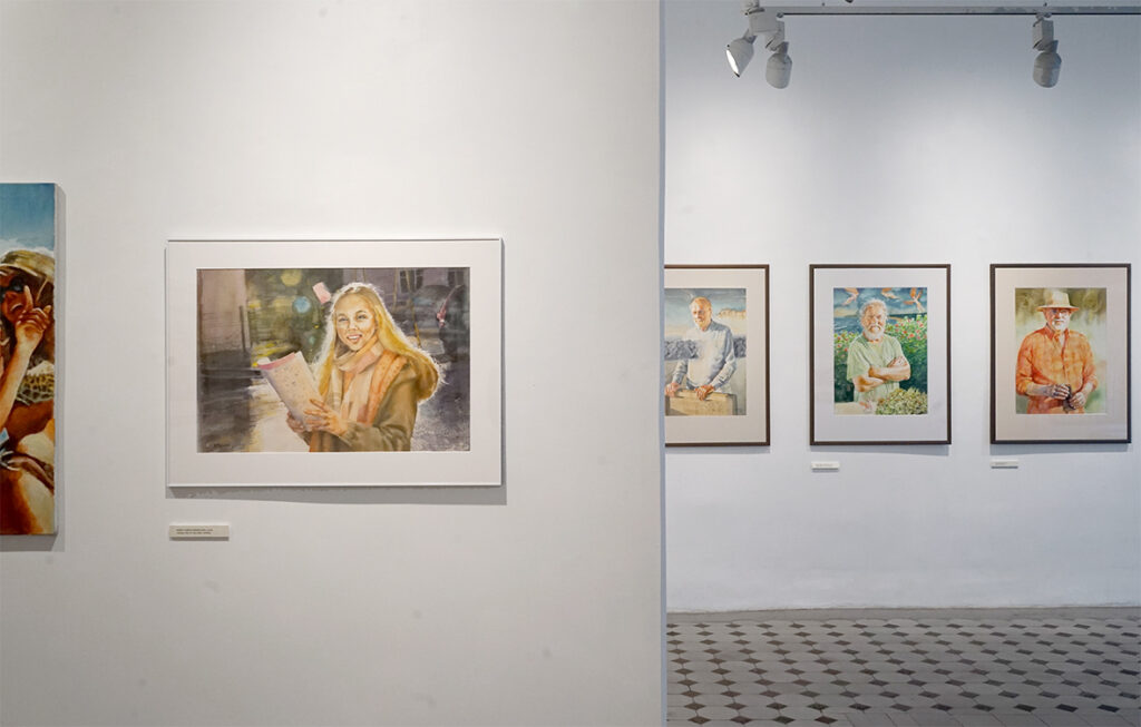 Lisaks akvarellipaberile maalitud portreedele on näitusel kompositsioone, mille teostus on klassikalisest akvarellitehnikast erinev ja isegi vastupidine ‒ kuiva pintsli tehnika krunditud aluspinnal.