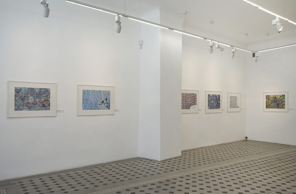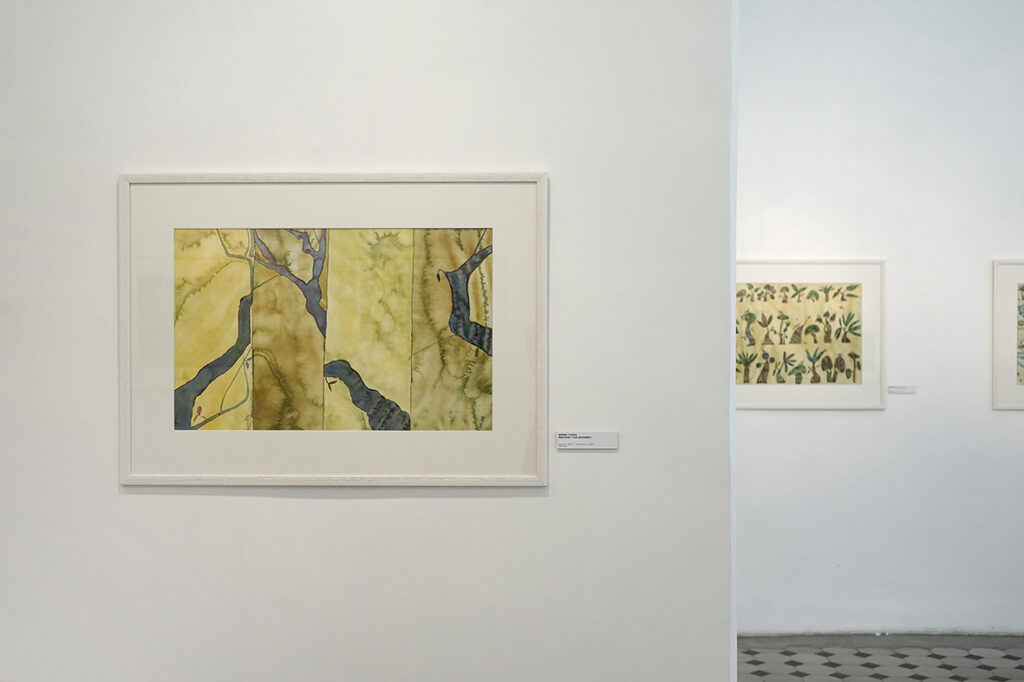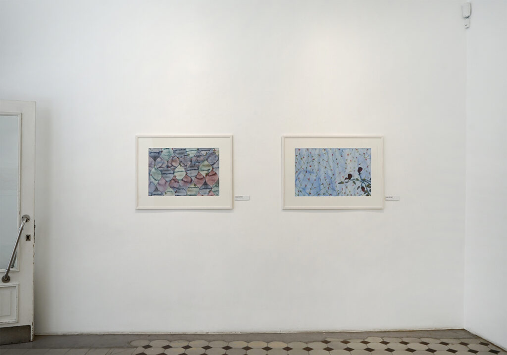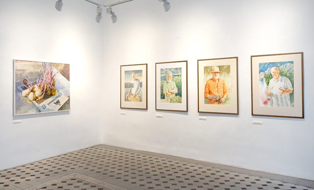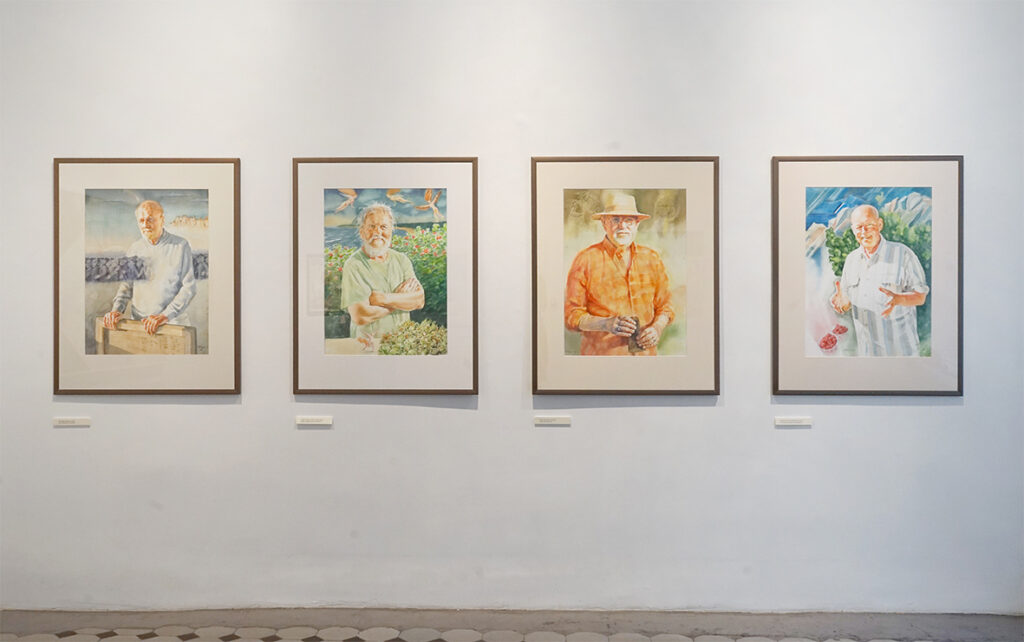 Lisaks akvarellipaberile maalitud portreedele on näitusel kompositsioone, mille teostus on klassikalisest akvarellitehnikast erinev ja isegi vastupidine ‒ kuiva pintsli tehnika krunditud aluspinnal.