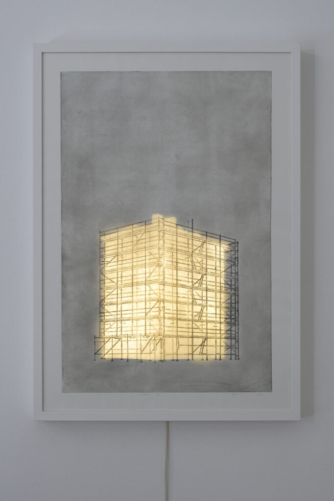 „Silm nagu seletaks“ on hommage unustatud arhitektuurile. Kujutades hapraid linnaruumilisi nähtusi, konstruktsiooni ja karkassi, püüab kunstnik ajutist venitada lõppematult pikaks.